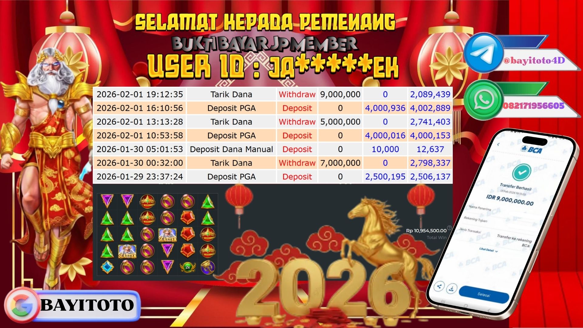 Selamat kepada User id : j***d***k Telah berhasil mendapatkan kemenangan besar