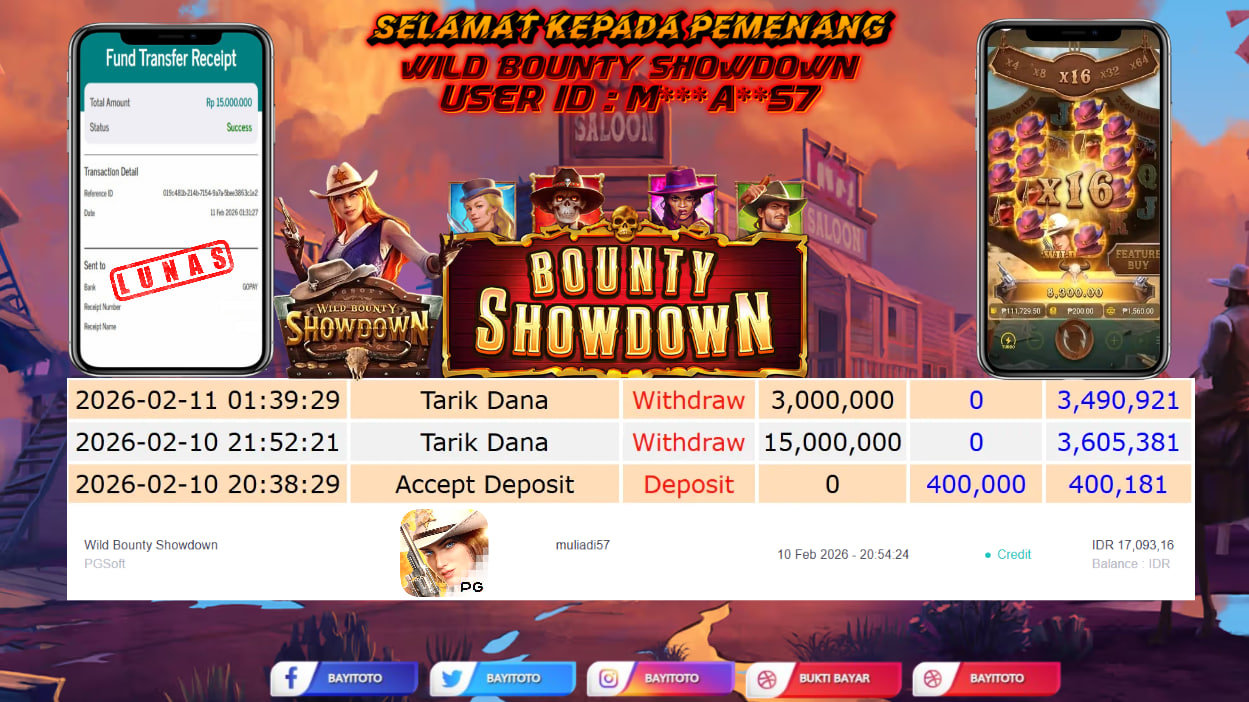 Selamat kepada User id : M**A**57 Telah berhasil mendapatkan kemenangan besar p