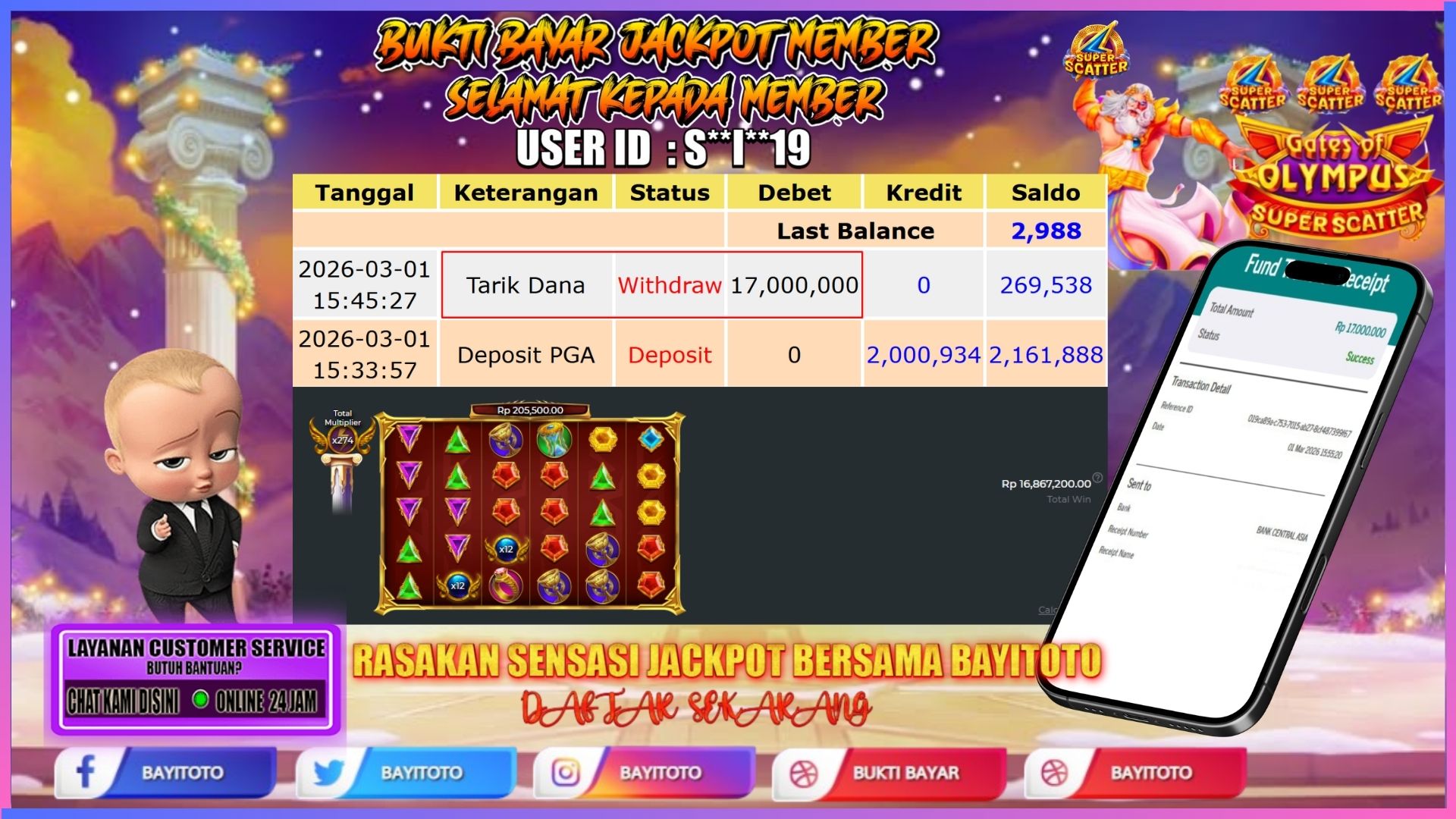 Selamat kepada User id : S**I**19 Telah berhasil mendapatkan kemenangan besar