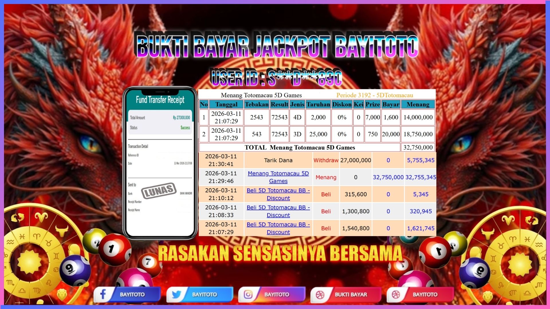 Selamat kepada User id : S**I**19 Telah berhasil mendapatkan kemenangan besar p